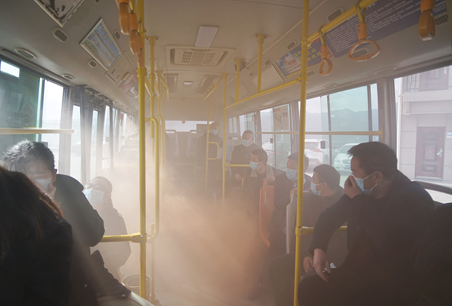 公交車動態(tài)安全演練模擬一輛正在行駛中的公交車,駕駛員突然聞到車內(nèi)有異味,發(fā)現(xiàn)車輛尾部發(fā)動機艙在冒煙,駕駛員隨即打開緊急雙閃燈,啟動車內(nèi)智能監(jiān)控報警,向公司智能調(diào)度中心報警,并立即靠邊停車,打開前后車門,疏導(dǎo)乘客從前后門有序下車,遠離車輛。