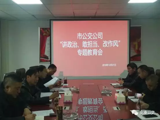 12月24日上午,市公交公司黨委召開“講政治、敢擔(dān)當(dāng)、改作風(fēng)”專題教育會(huì),黨委書記、董事長(zhǎng)張曉強(qiáng)主持會(huì)議并講話,公司黨政領(lǐng)導(dǎo)班子成員參加會(huì)議,中層以上干部列席會(huì)議。會(huì)議傳達(dá)學(xué)習(xí)了市國(guó)資委《關(guān)于在全市工信(國(guó)資)系統(tǒng)領(lǐng)導(dǎo)干部中開展“講政治、敢擔(dān)當(dāng)、改作風(fēng)”專題教育實(shí)施方案》、市紀(jì)委《關(guān)于集中開展違規(guī)收送禮金問題專項(xiàng)整治的工作方案》《關(guān)于集中整治形式主義、官僚主義的工作安排》等文件。